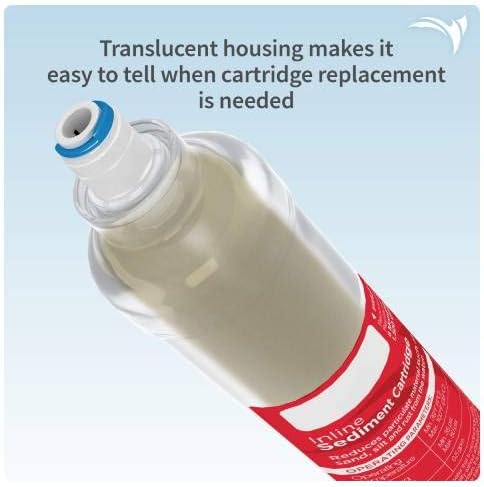 • TRANSLUCENT FOR EASY VIEWING: This sediment filter has a translucent polyethylene housing for easy viewing of the cartridge to know when it's time to replace. Replace every 3-6 months or 1,500 gallons of total water passing through the cartridge.