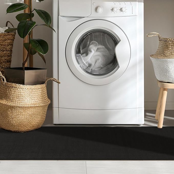 Machine Washable Modern Solid Design Non-Slip Rubberback 2x5 Traditional Runner Rug for Hallway, Kitchen, Bedroom, Entryway, 20" x 59", Black