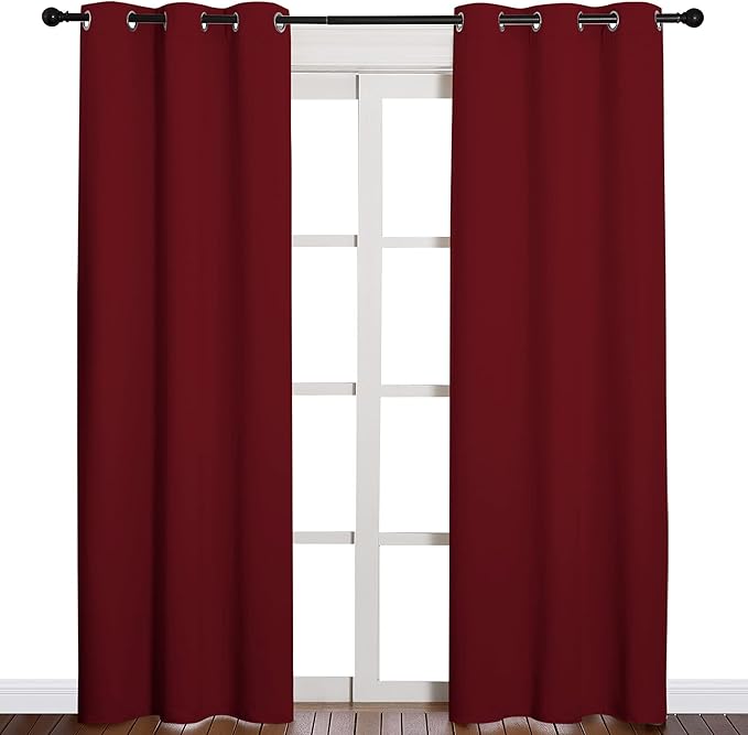 NICETOWN Home Decorations Thermal Insulated Solid Grommet Top Blackout Living Room Curtains/Drapes for Christmas & Thanksgiving Gift (1 Pair, 42 x 84 inches, Burgundy Red)