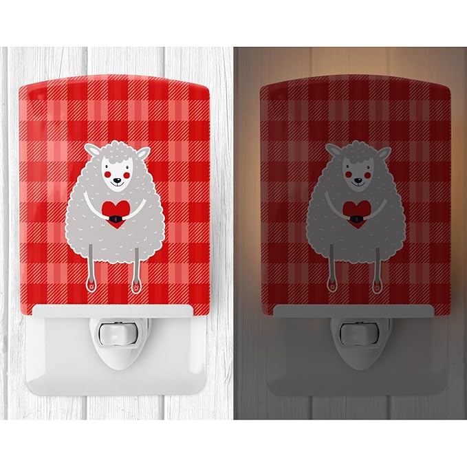Caroline's Treasures BB6762CNL Lamb Love Ceramic Night Light Compact, UL-Certified, Ideal for Bedroom, Bathroom, Nursery, Hallway, Kitchen, 6x4x3, Multicolor