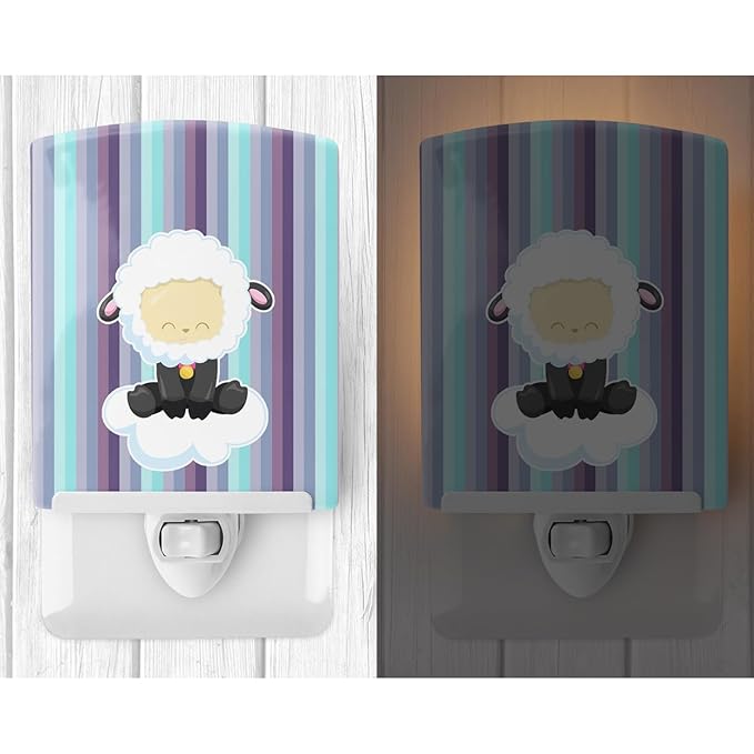 Caroline's Treasures BB6875CNL Sheep on Cloud Ceramic Night Light Compact, UL-Certified, Ideal for Bedroom, Bathroom, Nursery, Hallway, Kitchen, 6x4x3, Multicolor