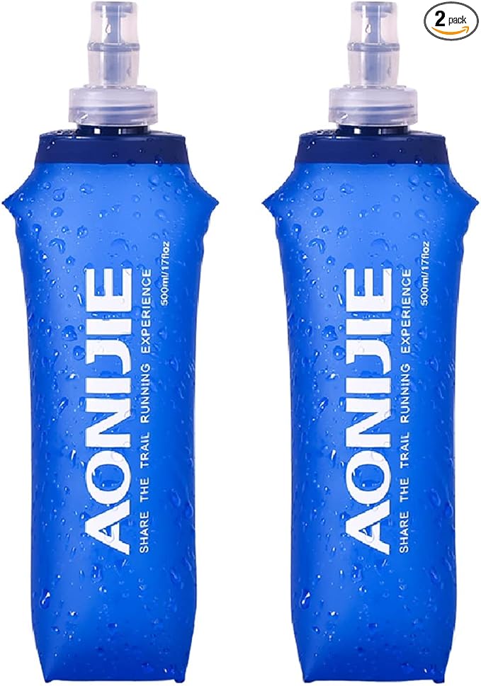 Azarxis Soft Flask Collapsible Water Bottle Running Soft Gel Flask Reservoir Handheld Folding TPU 250 500ml for Hydration Pack Hiking Cycling Climbing (500ml/16.9oz - 2 Pack)