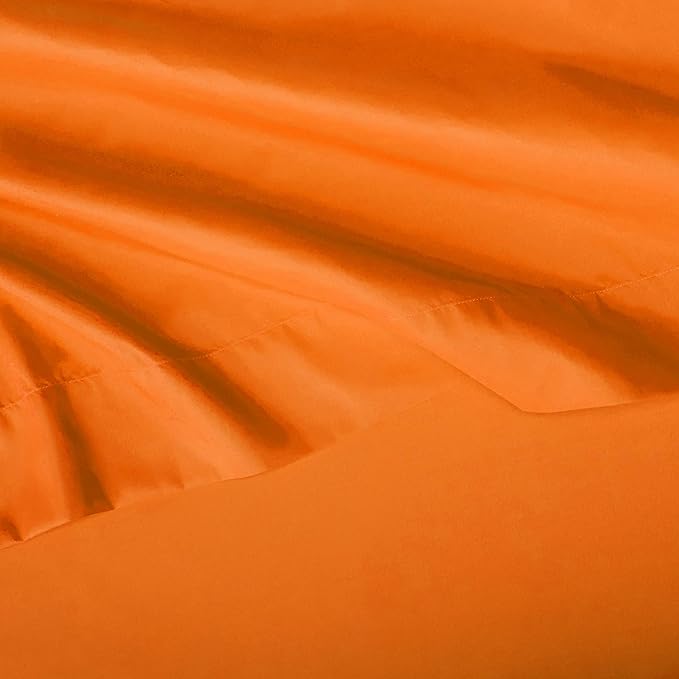 • Twin-size set in Bright Orange includes a 66 x 96-inch flat sheet, 38 x 74 x 14-inch fitted sheet, and a 20 x 30-inch pillowcase