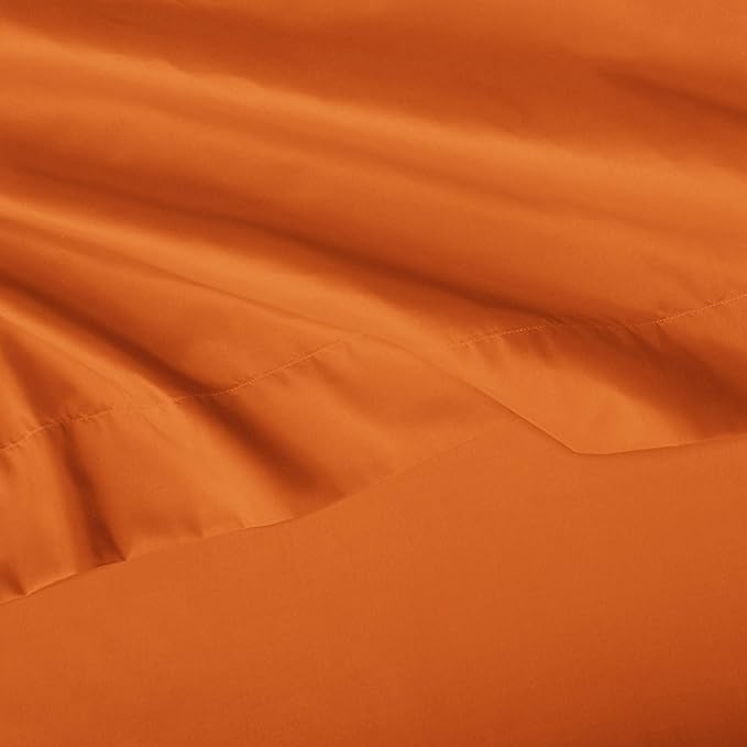 • Full-size set in Bright Orange includes (1) 81 x 96-inch flat sheet, (1) 55 x 75 x 14-inch fitted sheet, and (2) 20 x 30-inch pillowcases