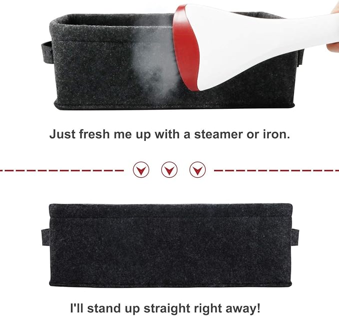 • Felt Handles and Stylish Storage: The strengthen felt handles on both sides for easy slide in and pull out of shelves or closet.Feel free to fold. These soft storage organizers keep closet and bedroom clutter under control while keeping clothing and other accessories in an easily accessible location.