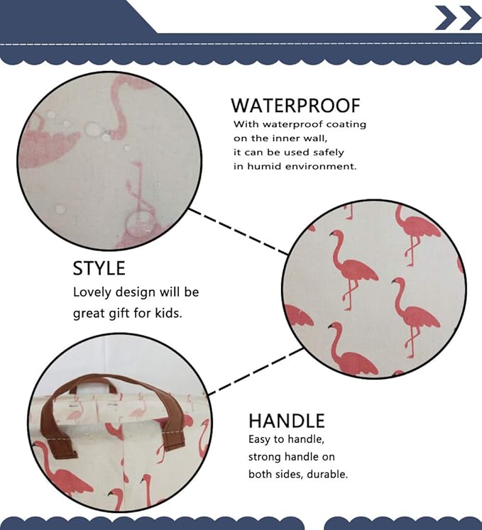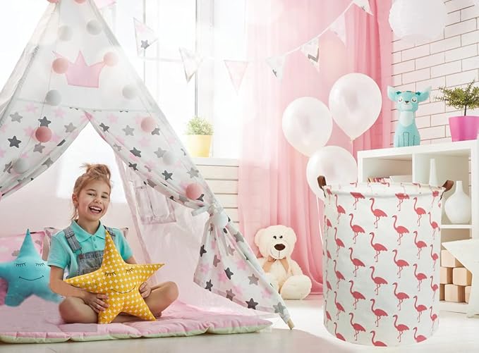 Pink Laundry Hamper,Kids Laundry Basket,Girls Hamper for Girls Room Decor,Nursery Hamper,Toy Bins,Bedroom. (Flamingo)