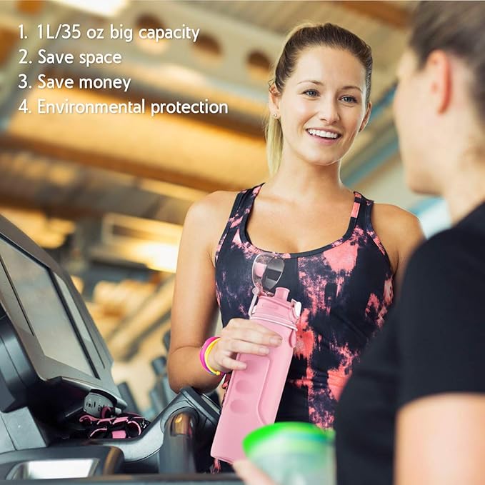 Valourgo 1L Collapsible Water Bottle BPA Free Portable Large Travel Mug Reusable Sports Bottle (35 oz Pink)