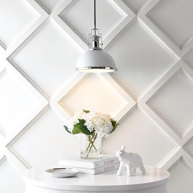JONATHAN Y JYL9536C Homer 13" 1-Light Modern Industrial Iron LED Dome Pendant Classic, Cottage, Farmhouse Bedroom Living Room, Chrome/White