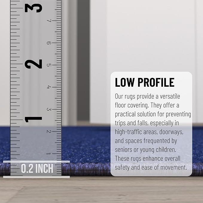 • [ULTRA THIN]: A ultra thin pile thickness of 0.2 inches offers ideal functionality that is perfect for busy areas, underneath furniture, and in entryways as it will not obstruct doorways.