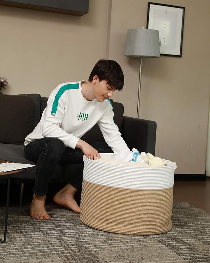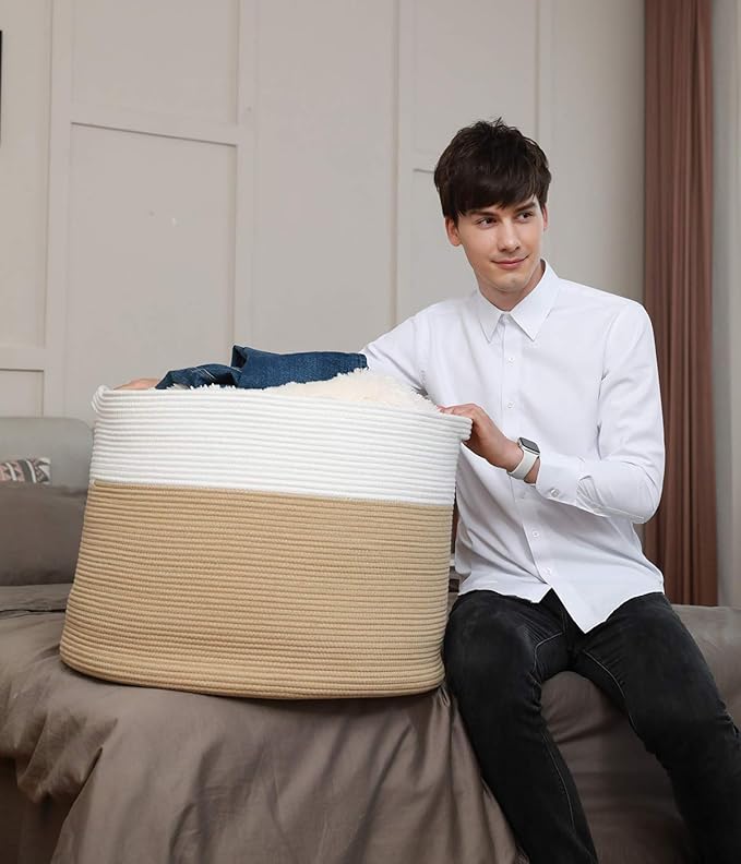 • Generous 24"x17" Size: Unleash grandeur with our cotton rope basket, designed for your most abundant storage needs. Ideal for clothes, towels, blankets, and more. Ensure your space accommodates this masterpiece before acquiring.