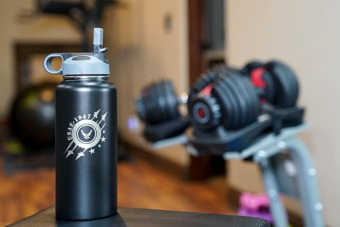 • 🛫 OFFICIALLY LICENSED USAF LOGOS: Our 32oz stainless steel water bottle comes with laser-engraved United States Air Force logos, providing authenticity and the ultimate display of Air Force pride. No need for an Air Force decal when you can have it laser etched with precision laser engraving machines.