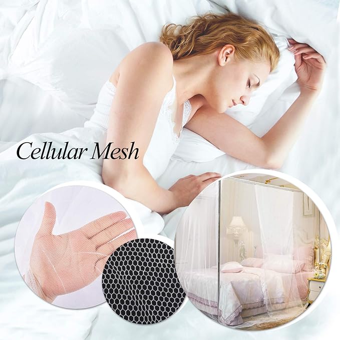 • ๐—ฃ๐—ฒ๐—ฟ๐—บ๐—ถ๐˜‚๐—บ ๐— ๐—ผ๐˜€๐—พ๐˜‚๐—ถ๐˜๐—ผ ๐—ก๐—ฒ๐˜ - The 4 Corner Post Bed Canopy is made of high quality polyester mesh fabric, soft and light. It provide proper air circulation, allowing you a peaceful and relaxing night's sleep.
