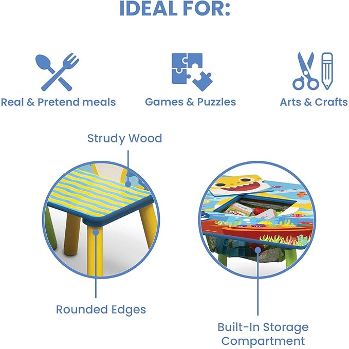 Delta Children Kids Table Storage (2 Chairs Included) -Ideal for Arts & Crafts, Snack Time, Homeschooling, Homework & More, Baby Shark, 3 Piece Set