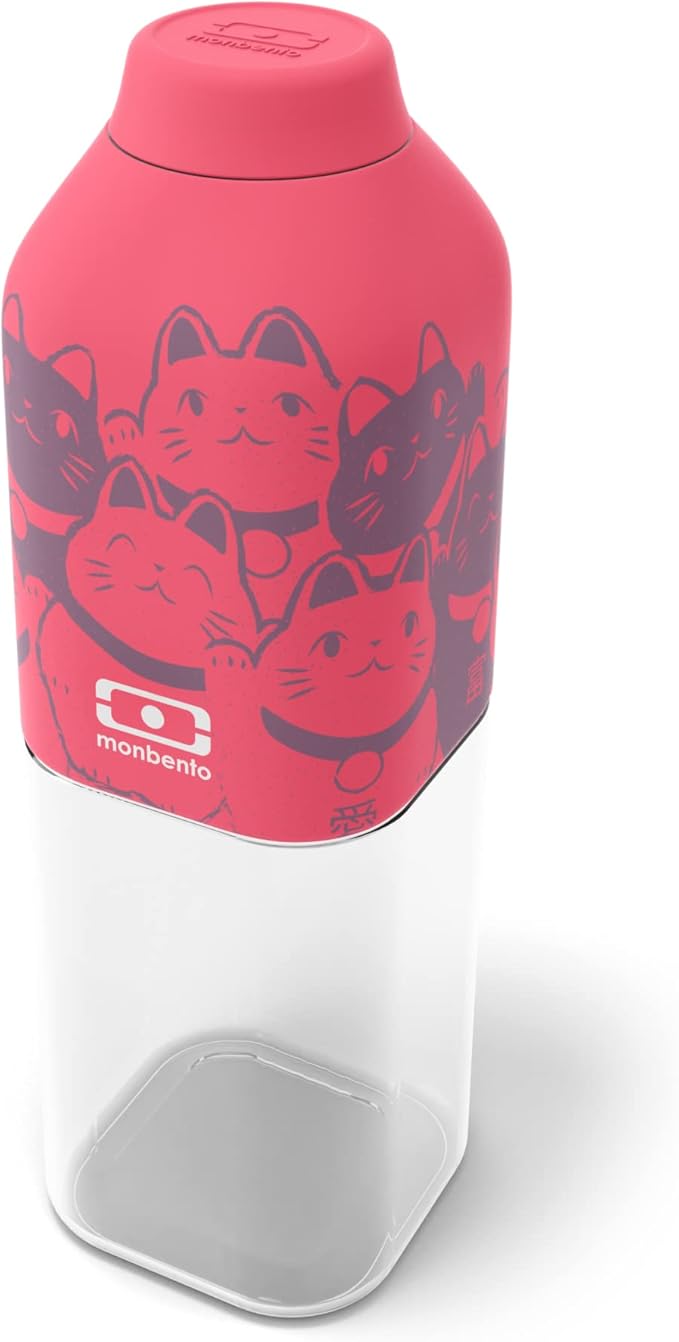 monbento - Water Bottle MB Positive M Neko 17 Oz - Leakproof Water Bottle Perfect for Work, Travel, Sport, or to Slip into a Handbag - BPA Free - Food Grade Safe - Cats Pattern - Pink