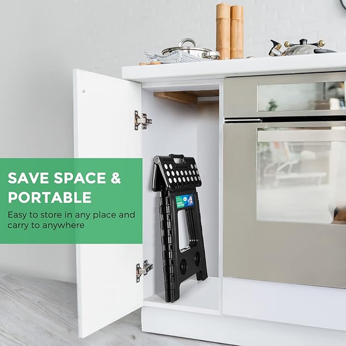 • 【Lightweight & Portable】Easy to carry around, this foldable step stool can be used across rooms or taken outdoors. Its compact design fits into any storage space, even your car for those camping trips. Upgrade your portability with Solid Strength.