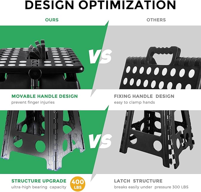 • 【Innovative Handle Design】Our 2023 collapsible stool features a flexible, movable handle design to prevent any injuries during folding or unfolding. Ascend or descend with the utmost safety and comfort with Solid Strength.