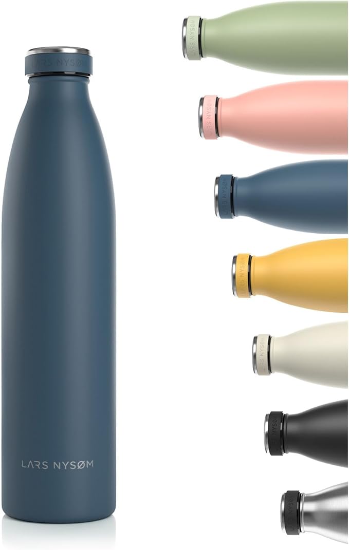 LARS NYSØM Stainless Steel Insulated Water Bottle 12oz 17oz 25oz 34oz 51oz | BPA-free Insulated Thermo Flask for Hot and Cold Beverages | Leakproof Drinking Bottle (Blue Stone, 34oz)