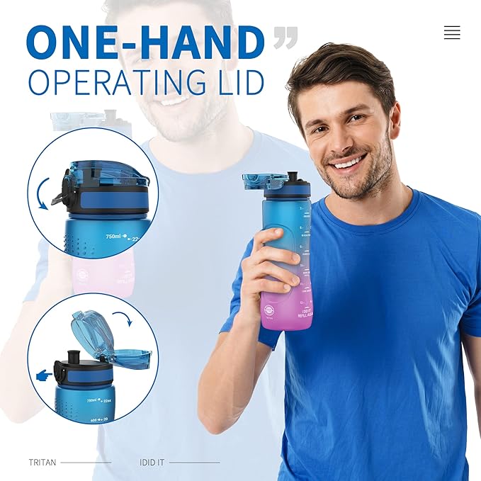 • ONE-HANDED OPERATING - Kitart water bottle comes with a one-handed opening lid. When you are cycling, climbing, or other exercises, you still can drink water with one hand leisurely.