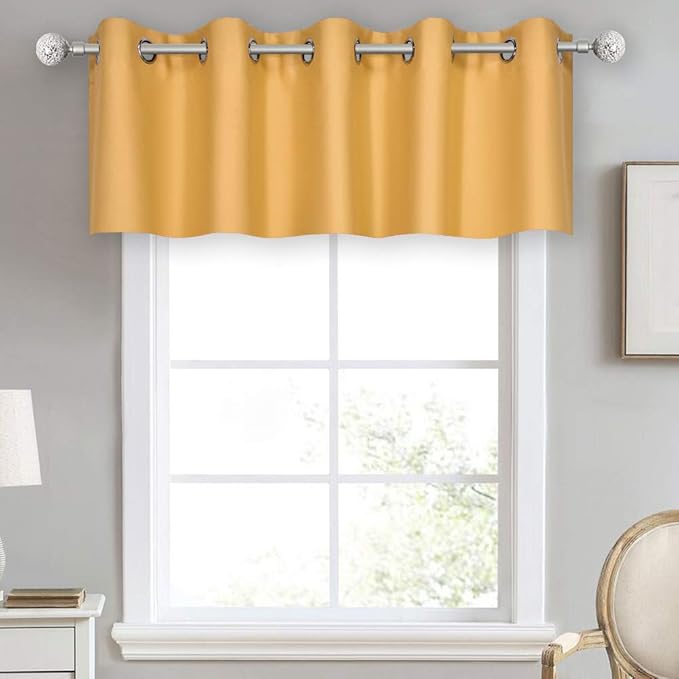 Mustard Yellow Valance for Kitchen Blackout Thermal Insulated 70X18 Inches Short Curtains Drapes Grommet Valance for Bedroom/Living Room 1 Panel