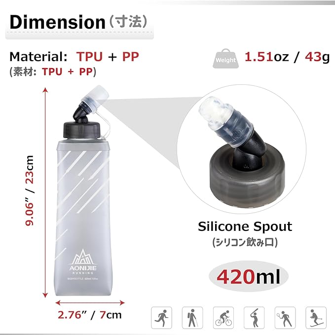 • Multi-Use: Perfect for outdoor sports, daily life use, hydration, marathon, jogging, running, hiking, cycling, climbing, bicycle, backpacking, traveling.