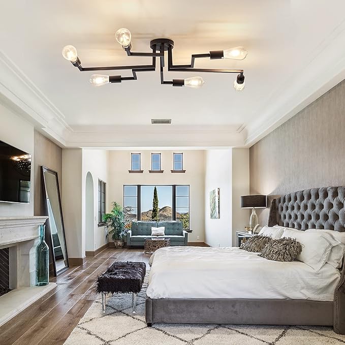 • CLOSE TO CEILING LIGHT DESIGN --Semi flush mount chandelier light with elegant and rustic look, not only a farmhouse lighting, but also a modern beautiful decoration. Indoor ceiling fixtures flush mount design creates a comfortable and modern ambiance to your house.