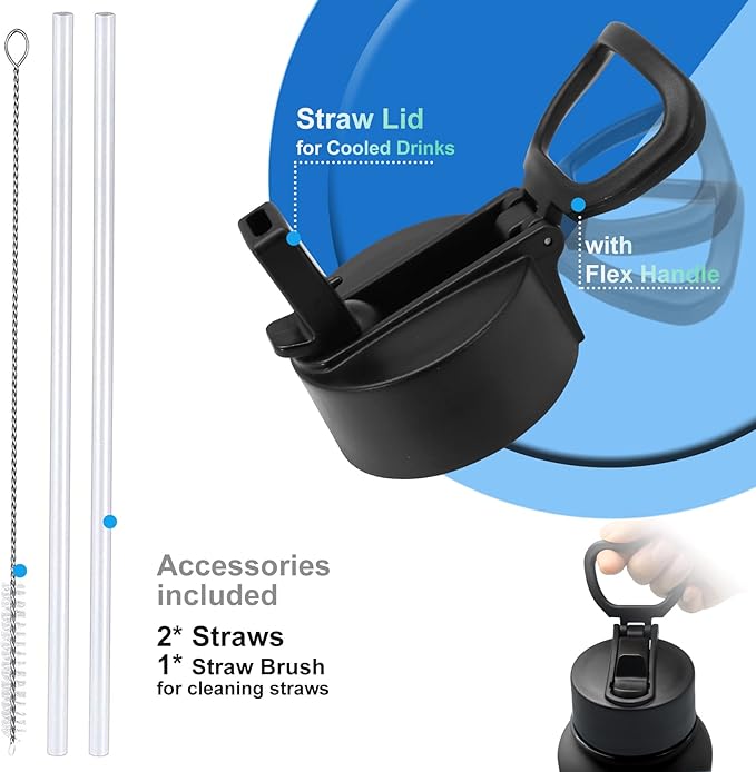 • Water Bottle with Straw: wide mouth Water bottle with lid: straw lid (Folding straw is leakproof when closed securely),easy-to-carry