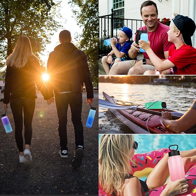 • 32oz Water Bottle: Insulated Water bottle, holds 32 ounces, ideal size for all-day hydration, on the go, camping, travelling, a wider opening for faster fill. Sturdiness & Durability, Reusable Water Bottle, Comes with a variety of vibrant colors, ideal for men, women, boys, girls, your friends, family, beloved ones【32oz water bottles do not fit in most cupholders】