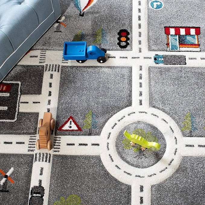 SAFAVIEH Carousel Kids Collection Area Rug - 8' x 10', Grey & Ivory, Non-Shedding & Easy Care, Ideal for High Traffic Areas for Boys & Girls in Playroom, Nursery, Bedroom (CRK192F)