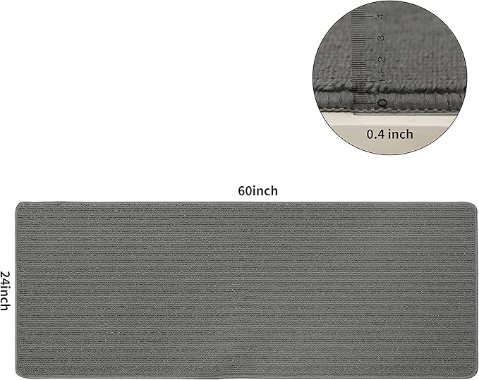 COSY HOMEER 24X60 Inch Kitchen Rug Mats Made of 100% Polypropylene Strip TPR Backing Soft Kitchen Mat Specialized in Anti Slippery and Machine Washable,for Kitchen, Floor Home,Office,Sink,Laundry,Grey