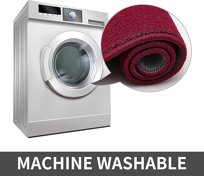 • WASHABLE: The kitchen rugs are easy to clean, you can just use vacuum to clean it on daily. If it has been used for a long time, customer can use wash machine to clean the mats. Different from other low quality kitchen mats, our mat is more durable and be strictly tested before marketing.