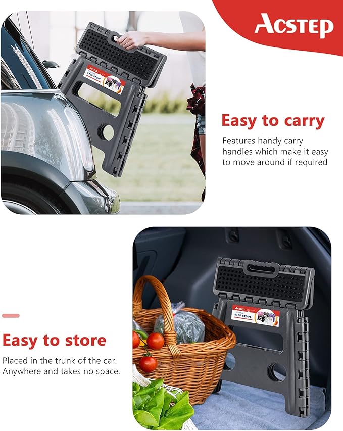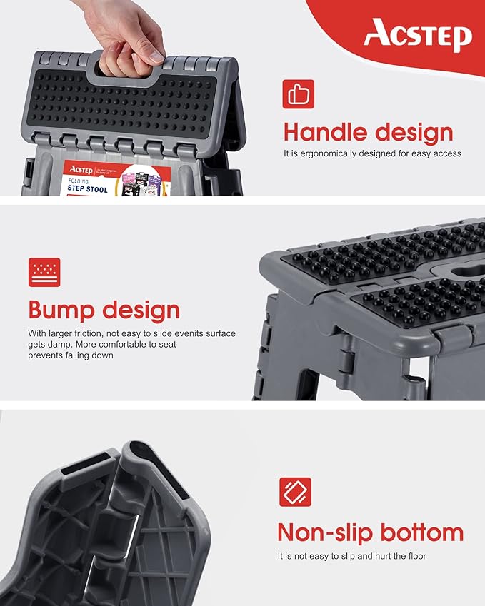ACSTEP 13" Folding Step Stool- Holds up to 300Lb,The Lightweight Non-Slip Upgrade Collapsible Stepping Stool is Sturdy Enough to Support Adults and Safe Enough for Kids(Grey,1 Pack)