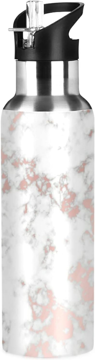 xigua Rose Gold Marble Water Bottle, BPA Free Stainless Steel Water Bottle Leak-Proof Sports Bottle for Camping Workouts Gym and Outdoor Activity, 22oz