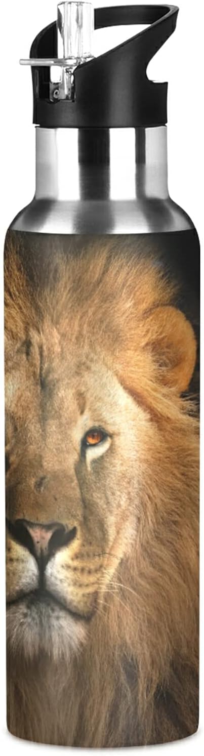 xigua Lion King Stainless Steel Water Bottle with Straw, BPA Free Reusable Leakproof Water Jug for Fitness Camping Outdoor Sports