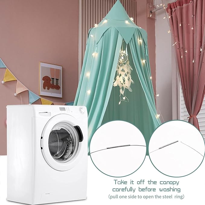 • Large Size: Compared with others,our canopy is large to meet your need. Top diameter--25.6"(65cm),bottom diameter--157.5"(400cm);total height--98.4"(250cm).Height can be adjusted according to your preferences,suitable for many high ceiling.Perfect bed canopy fit for kids ,cribs, children's bed,toddler bed or twin,full,queen bed, features an opening for easy entrance.