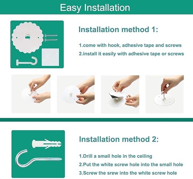 • Package Include: All the installation accessories are attached to the mosquito net.Need 3 x AA Batteries(NOT INCLUDE).The LIGHT can hang to the METAL RING of the top . It came with a sticky pad thing and a screw hook, so you can choose how to hang it up(with installation instructions),Easy to install to the ceiling.It also include the star lights and dream catchers that children are looking forward to