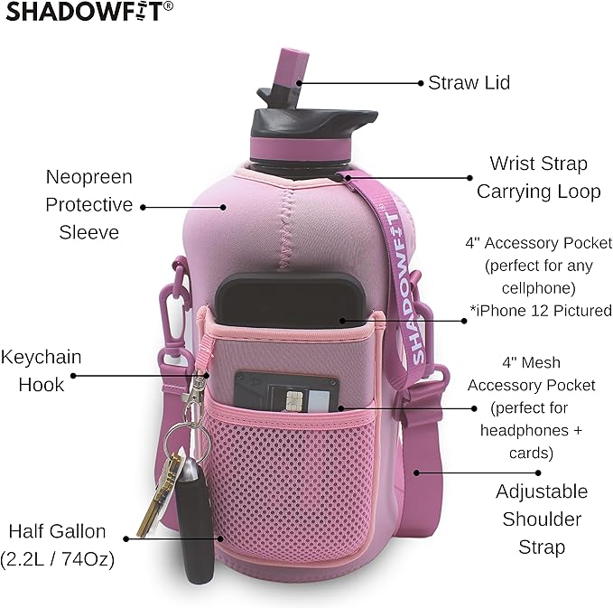 • Designed for a Great Workout: Our ShadowFit team wants you to be able to focus on getting in your best workouts! We have designed these large water bottles to not only keep you fully hydrated, but to create ease at the gym and during your outdoor fitness activities like hiking, biking, running, and sports. You can carry it around by the built-in handle, removable strap, or wrist-strap carrying loop while storing your keys, cell phone, cash, and cards.