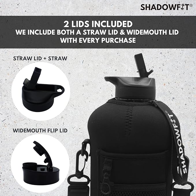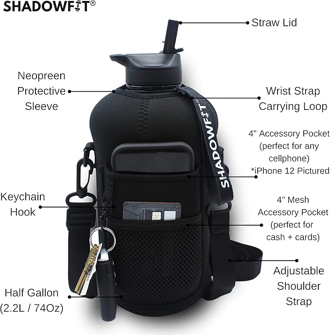 • Designed for a Great Workout: Our ShadowFit team wants you to be able to focus on getting in your best workouts! We have designed these large water bottles to not only keep you fully hydrated, but to create ease at the gym and during your outdoor fitness activities like hiking, biking, running, and sports. You can carry it around by the built-in handle, removable strap, or wrist-strap carrying loop while storing your keys, cell phone, cash, and cards.