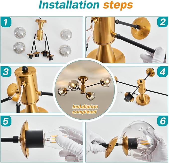 • Compatible with a wide range of light bulbs: Safety and energy saving. Hold 4*E26 lamp base, support 60W bulbs maximum. LED or CFL Edison bulbs dimmer bulbs are all compatible with this light fixture .(BULB NOT INCLUDED)