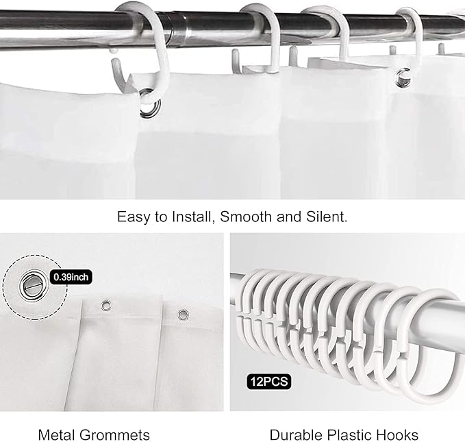 • ♥WHAT'S INCLUDED: Each package provides one 60” Width x 71”Length polyester shower curtain and 12 plastic hooks.