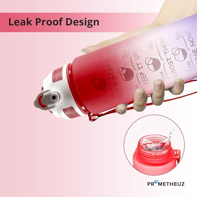 PROMETHEUZ Sports Water Intake Reminder Bottle with Time Marker and Straw, Leakproof Tritan BPA-Free, Fast Flow,Dark Pink Dark Purple, 32 oz
