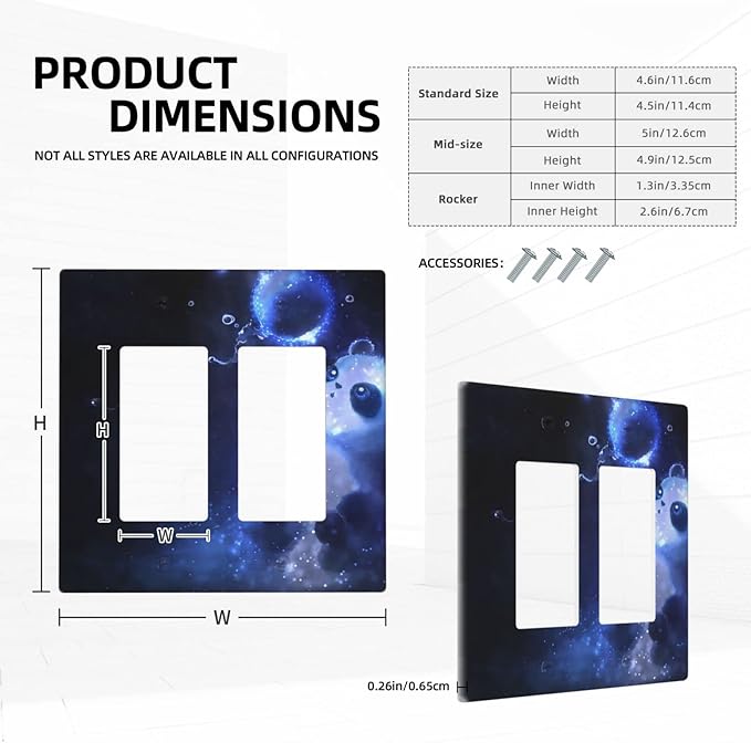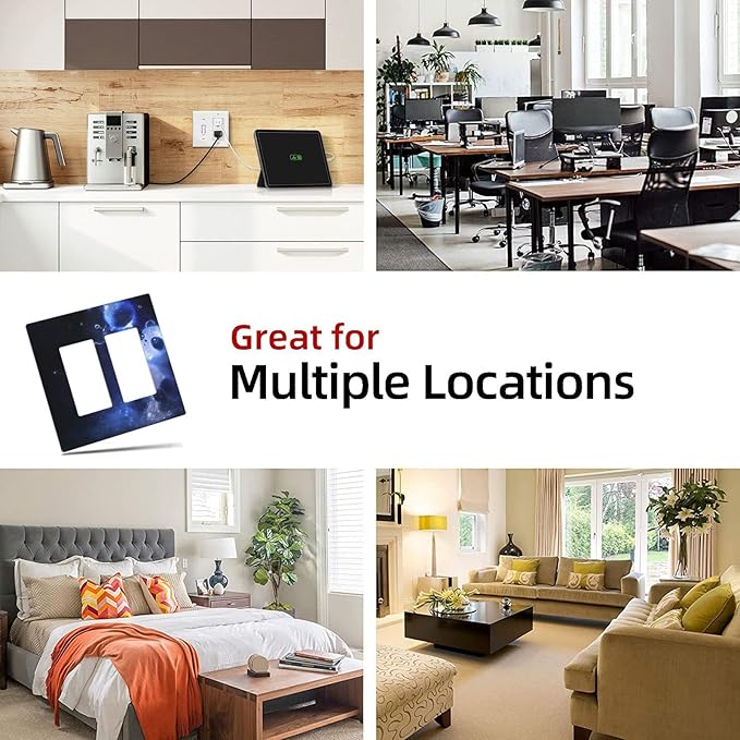 • Size:double rocker wall plate : 4.5" x 4.6".the standard Size is easy to install on the wall grid, covering more wall defects, which makes it easy to decorate any standard switch cover and electrical socket.
