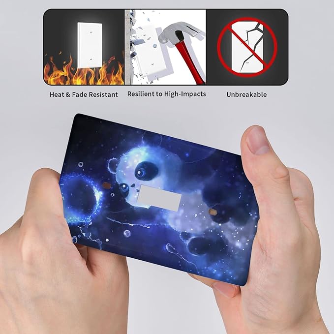 Cute Baby Panda Light Switch Cover Wall Plate Decorative 1 Gang Single Toggle Covers Blue for Farmhouses Kitchenss Bedrooms Bathrooms 2.76 x 4.5 in
