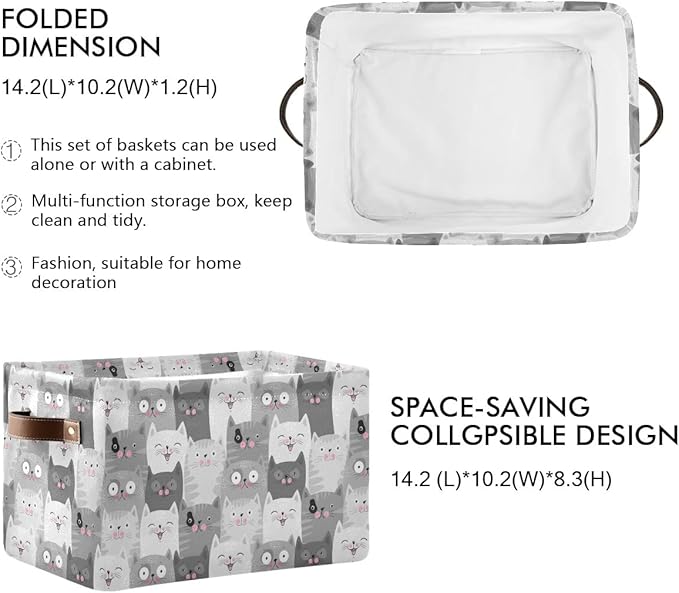 Cute Cats Storage Basket Fabric Storage Bin Laundry Baskets, Funny Cat Kitty Foldable Storage Boxes Organizer Bag for Baby Cloth Dog Toy Book Storage Cubes Shelf Closet Basket 16×12×8 Inches