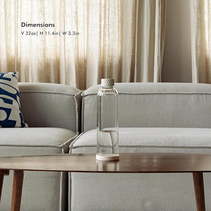 KIVY 32 oz Glass Water Bottle with Silicone Sleeve - Neutral glass waterbottle 32oz - Aesthetic water bottles glass bottle - Borosilicate glass water bottle 32 oz - White water bottle glass