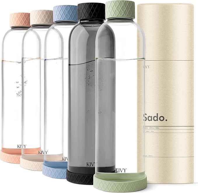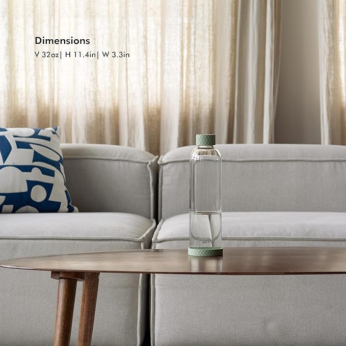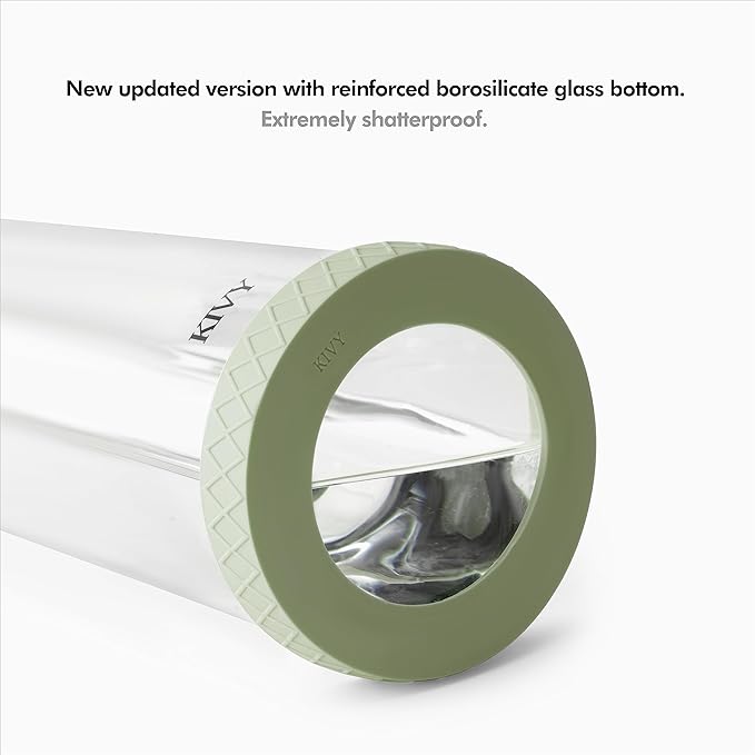 KIVY 32 oz Glass Water Bottle with Silicone Sleeve - BPA free Glass Water Bottles 32 oz - Green water bottles glass bottle clear - Borosilicate glass water bottle 32 oz - Glass drinking bottle