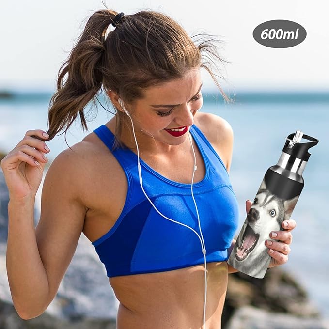 Blueangle 32oz Siberian Husky Dog Water Bottle, BPA Free Stainless Steel Water Bottle Leak-Proof Sports Bottle for Camping Workouts Gym and Outdoor Activity