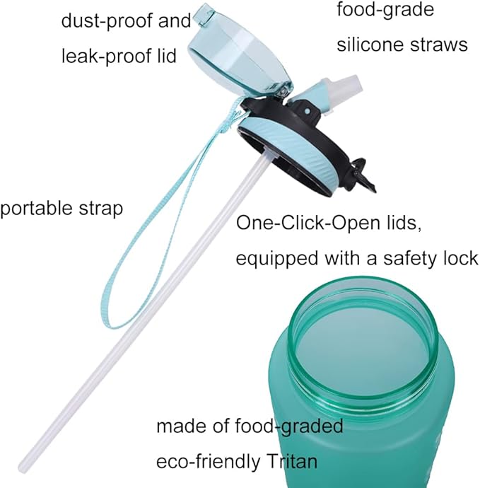 • 2.【Time Markers And Motivational Quote】The water bottle have encouraging words and time stamps on one side, and ounces & ml measurement on the other side. Can help you achieve health And fitness goals.
