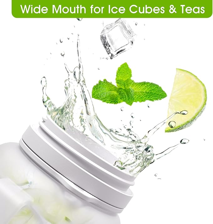 • Wide-mouth water bottle, free to add ice cubes and make fruit teas: The bottle 70mm diameter wide-open mouth makes it easy to clean. Not as other plastic gallon water jug, this hydrated water bottle can be wristed and rubbed to remove sendimentary factors on the bottle wall. The water tracker bottle body can contain water temperature between -40 degree to 200 degree, you can add ice cubes and other tea supplements.