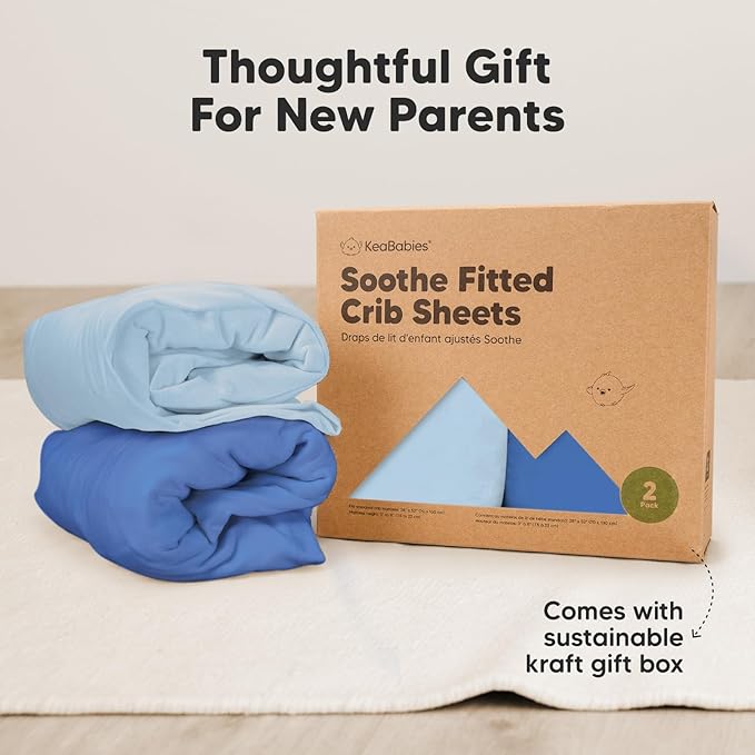 • 2-Pack Fitted Crib Sheets - Each KeaBabies Soothe Baby Crib Sheets set comes with two organic crib sheets for boys and girls that can perfectly fit the standard nursery crib mattresses sized at 52” x 28” and height of 3” to 8”.