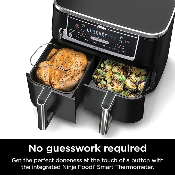 • Special Feature : Dishwasher Safe Parts, 2 Separate Air Frying Baskets, Foodi Smart Thermometer for Perfect Doneness